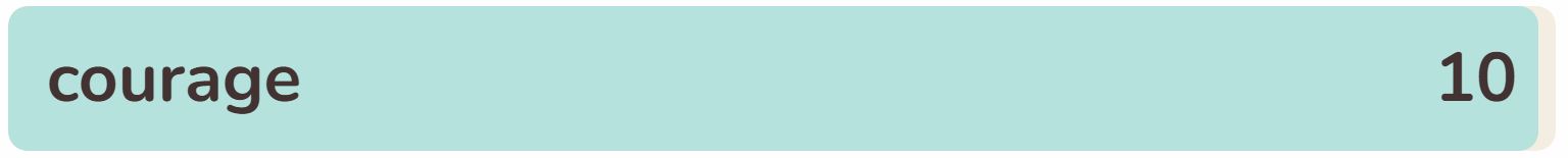 - The tenth phrase within the checklist right now is ‘COURAGE‘.