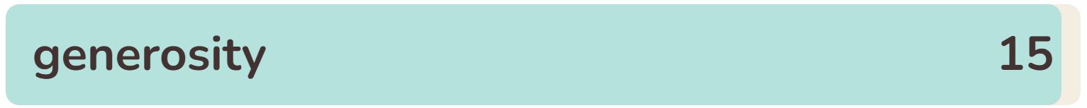 - The fifteenth phrase within the checklist right now is ‘GENEROSITY‘.