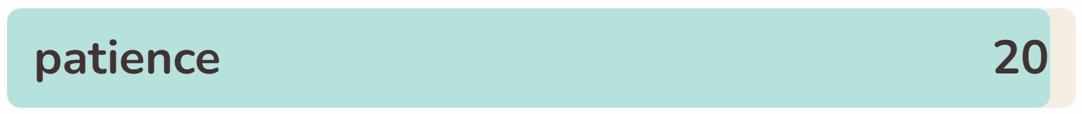 - The 20th phrase within the checklist right now is ‘PATIENCE‘.