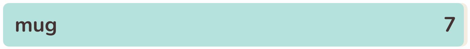 • The seventh phrase within the checklist at the moment is ‘MUG‘.