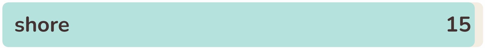 - The fifteenth phrase within the record right this moment is ‘SHORE‘.