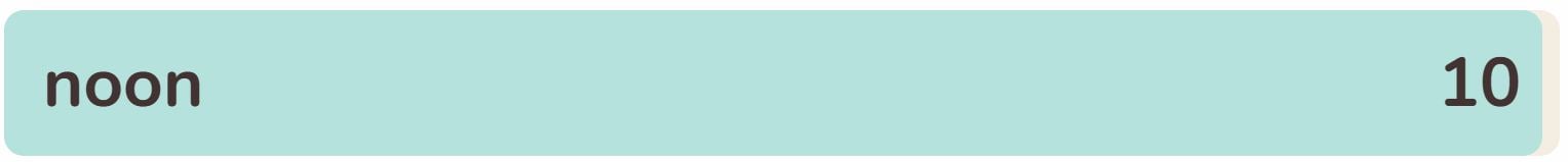 - The tenth phrase within the record immediately is ‘NOON‘.