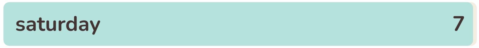 - The seventh phrase within the record immediately is ‘SATURDAY‘.
