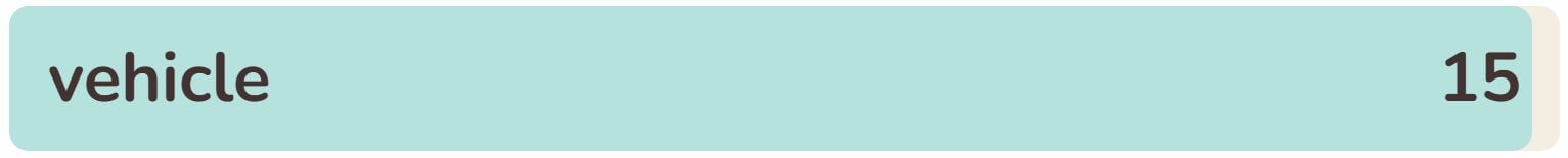 - The fifteenth phrase within the record at the moment is ‘VEHICLE‘.