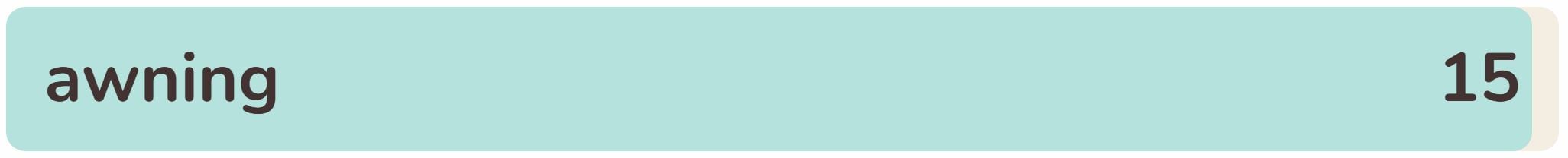 • The fifteenth phrase within the listing right this moment is ‘AWNING‘.