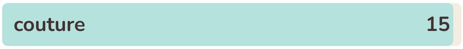 - The fifteenth phrase within the checklist right this moment is ‘COUTURE‘.