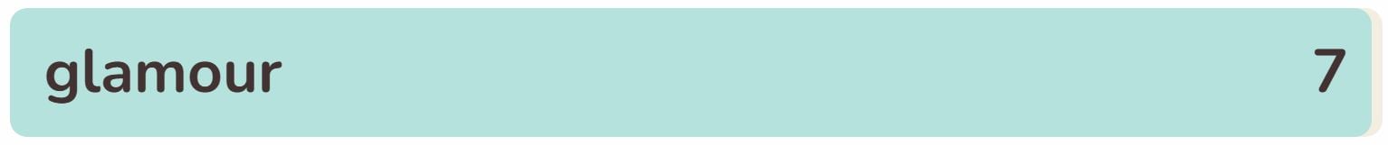 - The seventh phrase within the checklist right this moment is ‘GLAMOUR‘.