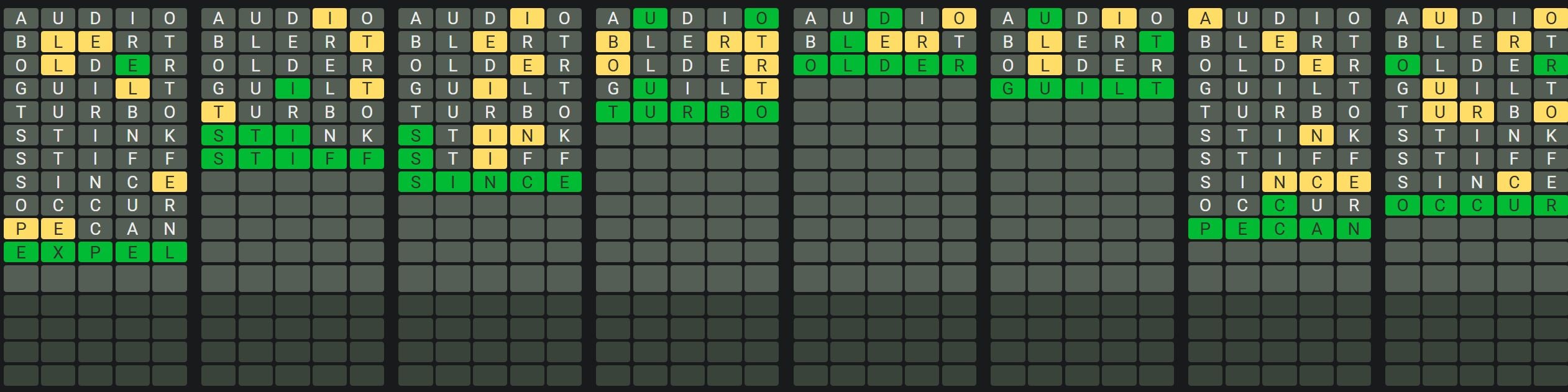 This can allow you to notice which letters seem in every phrase so you possibly can remedy the phrases rapidly and effectively. There could also be some phrases which have repeated letters, so be sure you preserve that in thoughts when guessing the phrases.