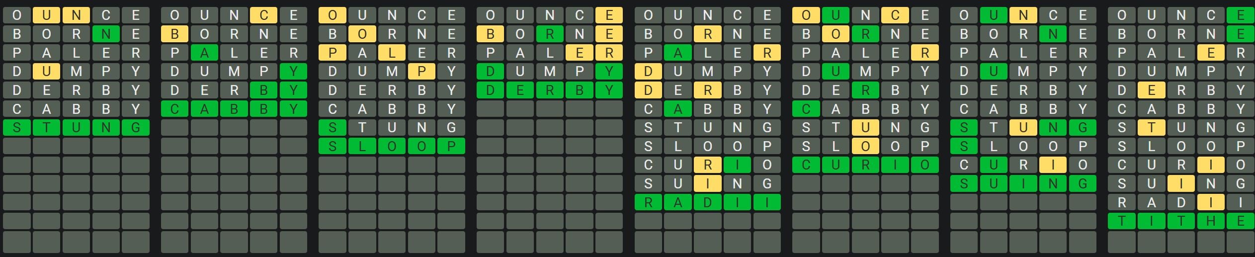 Trace 4: There’s a Y in phrase 7 solely.