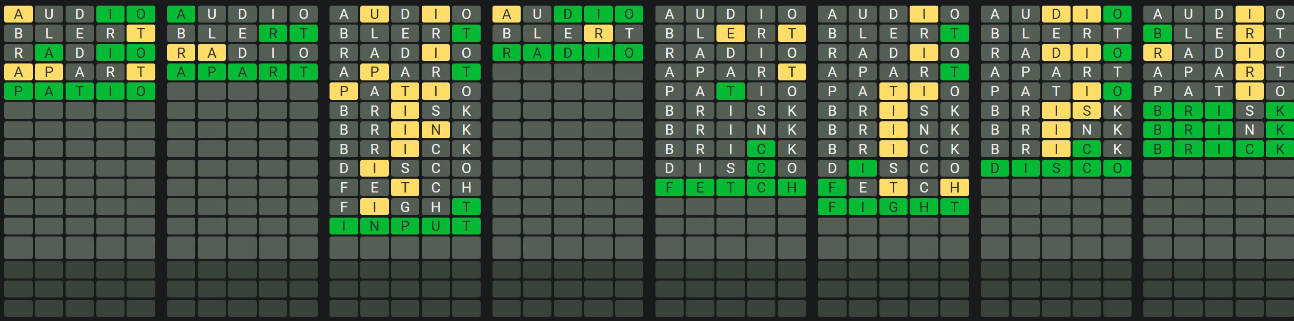 Trace 5: There aren’t any repeated letters in any phrases right this moment.