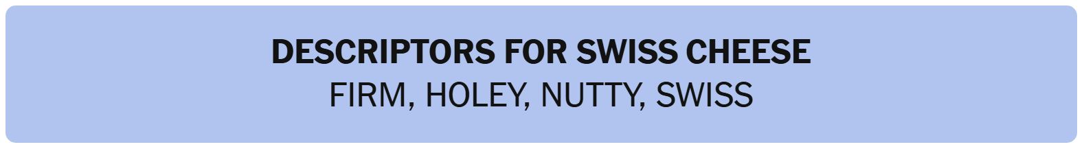 - DESCRIPTORS FOR SWISS CHEESE – FIRM, HOLEY, NUTTY, SWISS