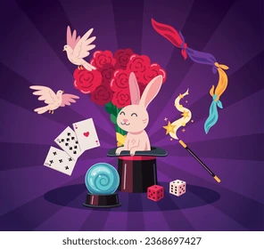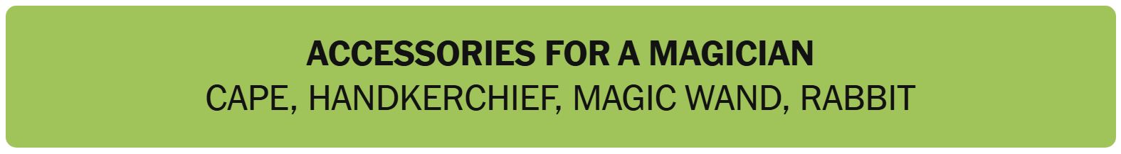 - ACCESSORIES FOR A MAGICIAN – CAPE, HANDKERCHIEF, MAGIC WAND, RABBIT