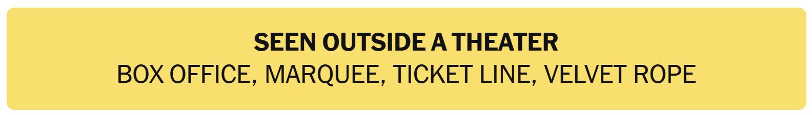- SEEN OUTSIDE A THEATER – BOX OFFICE, MARQUEE, TICKET LINE, VELVET ROPE
