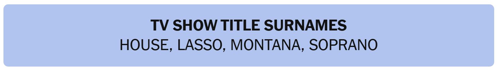 - TV SHOW TITLE SURNAMES – HOUSE, LASSO, MONTANA, SOPRANO