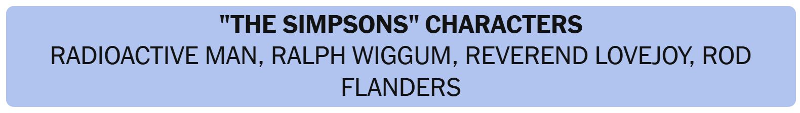 - “THE SIMPSONS” CHARACTERS – RADIOACTIVE MAN, RALPH WIGGUM, REVEREND LOVEJOY, ROD FLANDERS