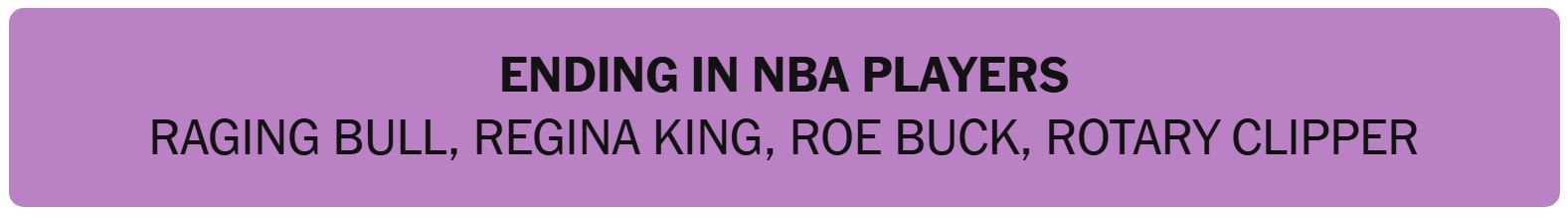 - ENDING IN NBA PLAYERS – RAGING BULL, REGINA KING, ROE BUCK, ROTARY CLIPPER