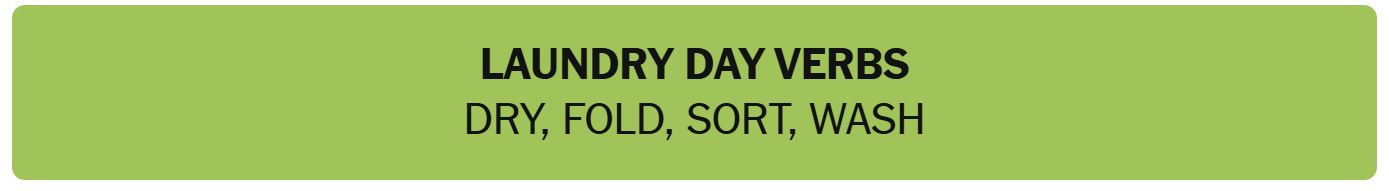 - LAUNDRY DAY VERBS – DRY, FOLD, SORT, WASH