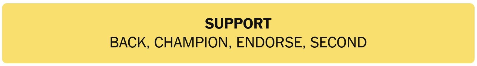 - SUPPORT – BACK, CHAMPION, ENDORSE, SECOND