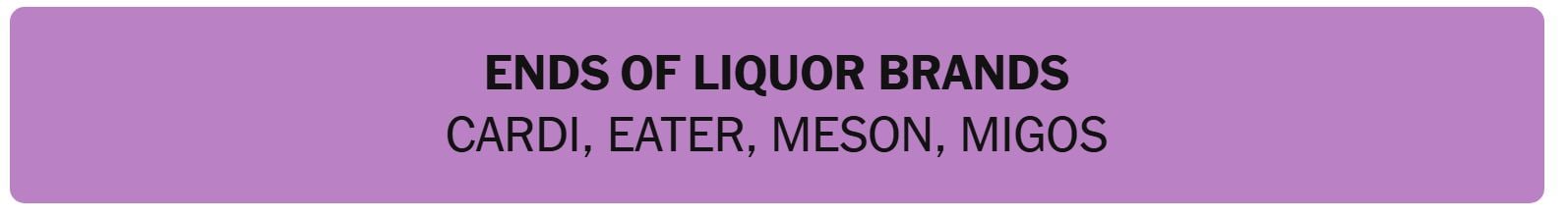 - ENDS OF LIQUOR BRANDS – CARDI, EATER, MESON, MIGOS