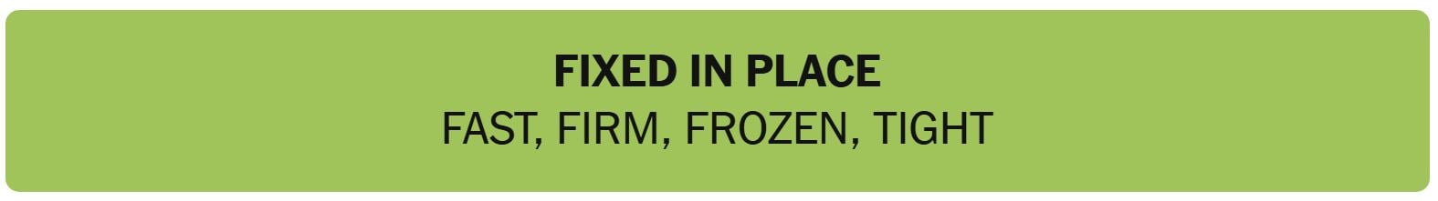 - FIXED IN PLACE – FAST, FIRM, FROZEN, TIGHT
