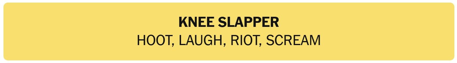 - KNEE SLAPPER – HOOT, LAUGH, RIOT, SCREAM
