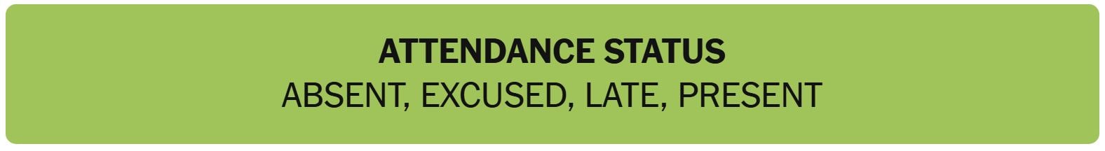 • ATTENDANCE STATUS – ABSENT, EXCUSED, LATE, PRESENT