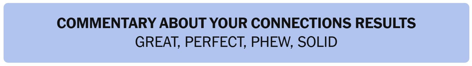 • COMMENTARY ABOUT YOUR CONNECTIONS RESULTS – GREAT, PERFECT, PHEW, SOLID