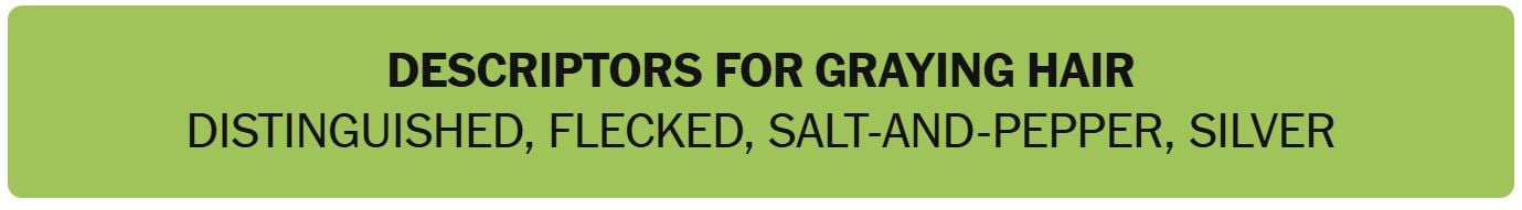 - DESCRIPTORS FOR GRAYING HAIR – DISTINGUISHED, FLECKED, SALT-AND-PEPPER, SILVER