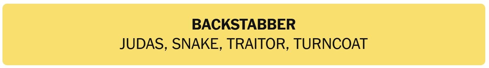 - BACKSTABBER – JUDAS, SNAKE, TRAITOR, TURNCOAT