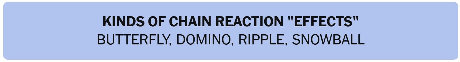 - KINDS OF CHAIN REACTION “EFFECTS” – BUTTERFLY, DOMINO, RIPPLE, SNOWBALL