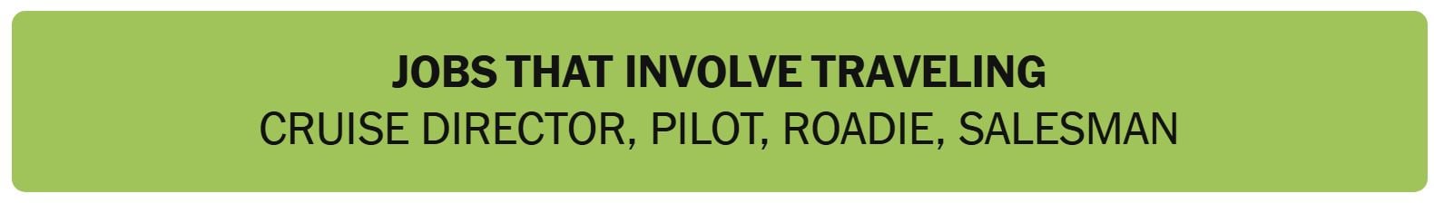 - JOBS THAT INVOLVE TRAVELING – CRUISE DIRECTOR, PILOT, ROADIE, SALESMAN