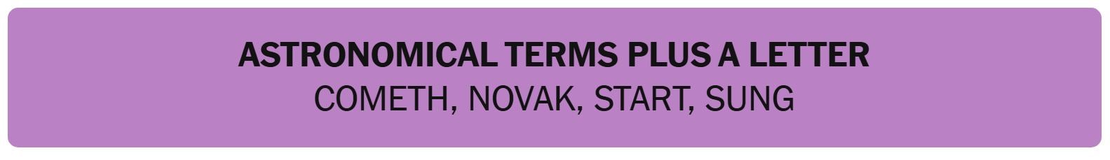 - ASTRONOMICAL TERMS PLUS A LETTER – COMETH, NOVAK, START, SUNG