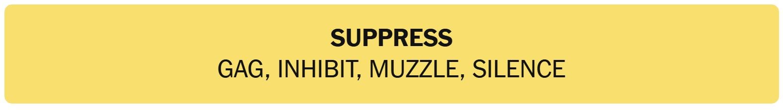 - SUPPRESS – GAG, INHIBIT, MUZZLE, SILENCE