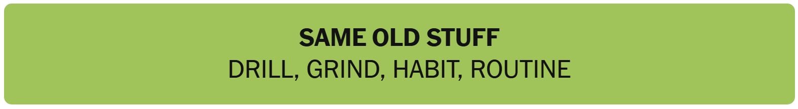 - SAME OLD STUFF – DRILL, GRIND, HABIT, ROUTINE