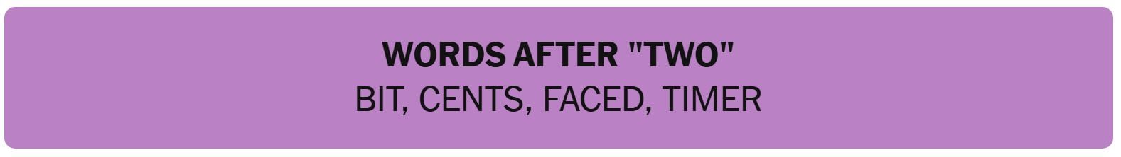 - WORDS AFTER “TWO” – BIT, CENTS, FACED, TIMER