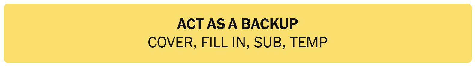 - ACT AS A BACKUP – COVER, FILL IN, SUB, TEMP