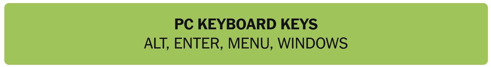 - PC KEYBOARD KEYS – ALT, ENTER, MENU, WINDOWS