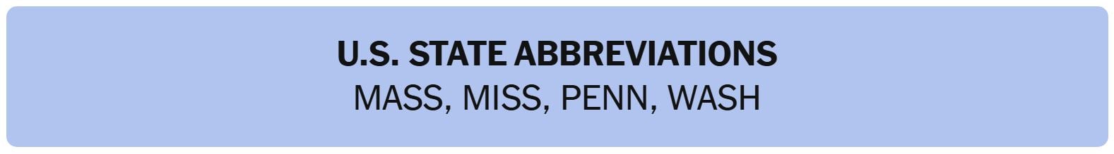 - U.S. STATE ABBREVIATIONS – MASS, MISS, PENN, WASH