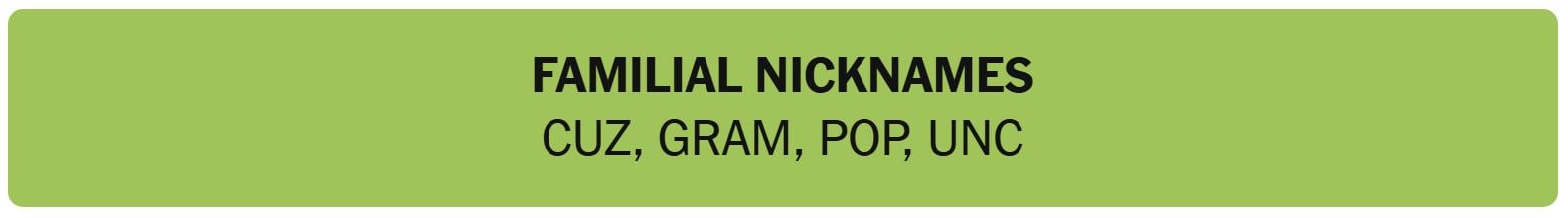 - FAMILIAL NICKNAMES – CUZ, GRAM, POP, UNC
