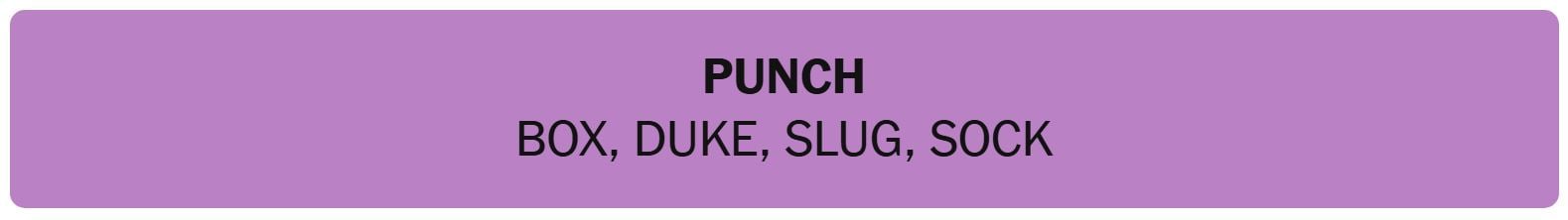 - PUNCH – BOX, DUKE, SLUG, SOCK
