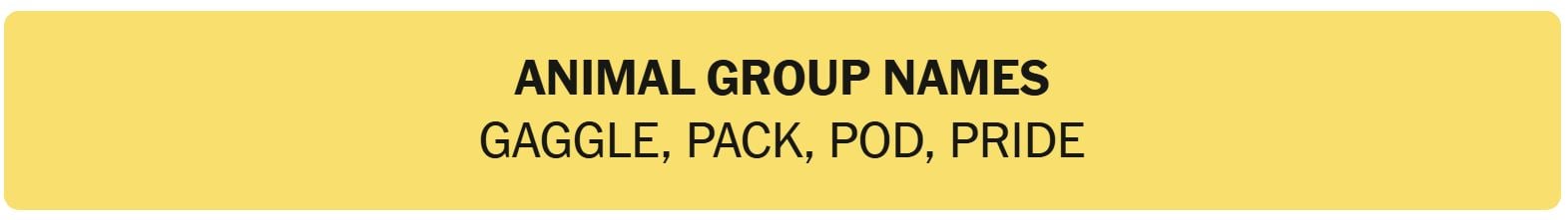 • ANIMAL GROUP NAMES – GAGGLE, PACK, POD, PRIDE