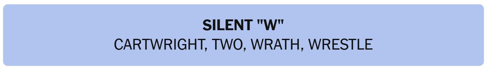 • SILENT “W” – CARTWRIGHT, TWO, WRATH, WRESTLE