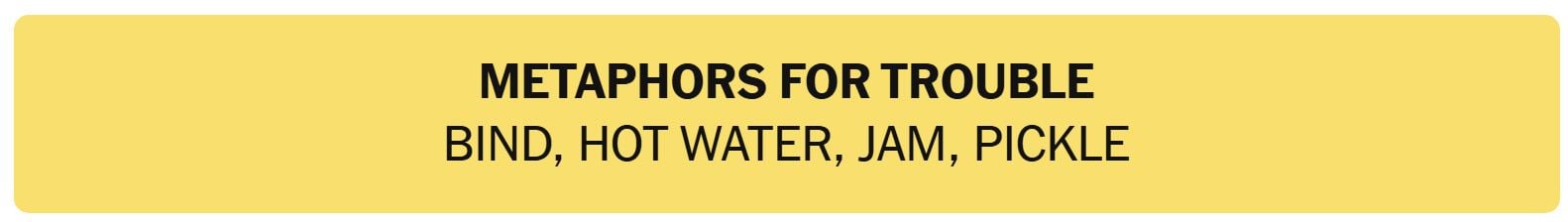 - METAPHORS FOR TROUBLE – BIND, HTO WATER, JAM, PICKLE
