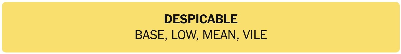 • DESPICABLE – BASE, LOW, MEAN, VILE