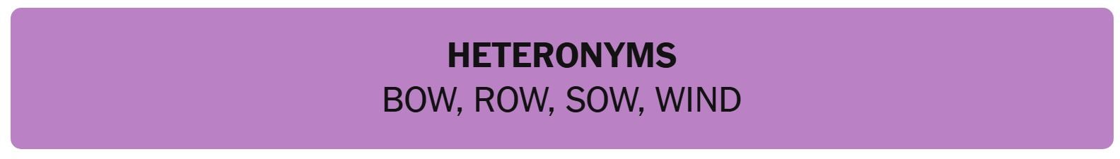 • HETERONYMS – BOW, ROW, SOW, WIND