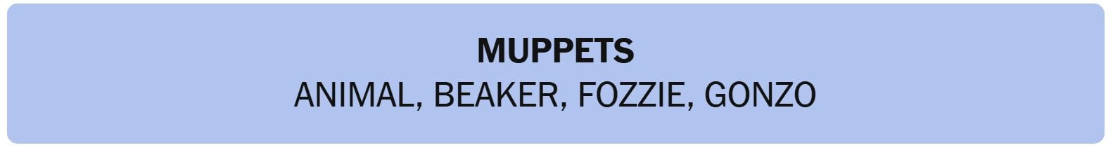 - MUPPETS – ANIMAL, BEAKER, FOZZIE, GONZO