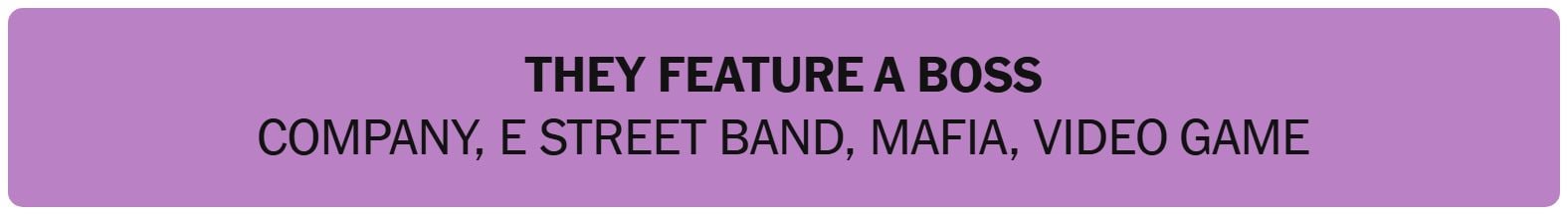 - THEY FEATURE A BOSS – COMPANY, E STREET BAND, MAFIA, VIDEO GAME