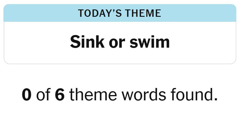 Today’s theme or trace for the puzzle is, “SINK OR SWIM” and there are six theme phrases to be discovered.