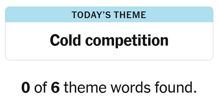 Today’s theme or trace for the puzzle is, “COLD COMPETITION” and there are six theme phrases to be discovered.