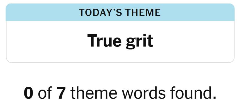 Today’s theme or trace for the puzzle is, “TRUE GRIT” and there are seven theme phrases to be discovered.
